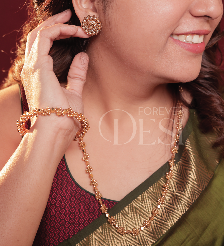 "I recently discovered Forever Desi and fell in love with their collection. The Temple jewelry set I ordered was packed beautifully and looked regal. Already planning my next order!"
