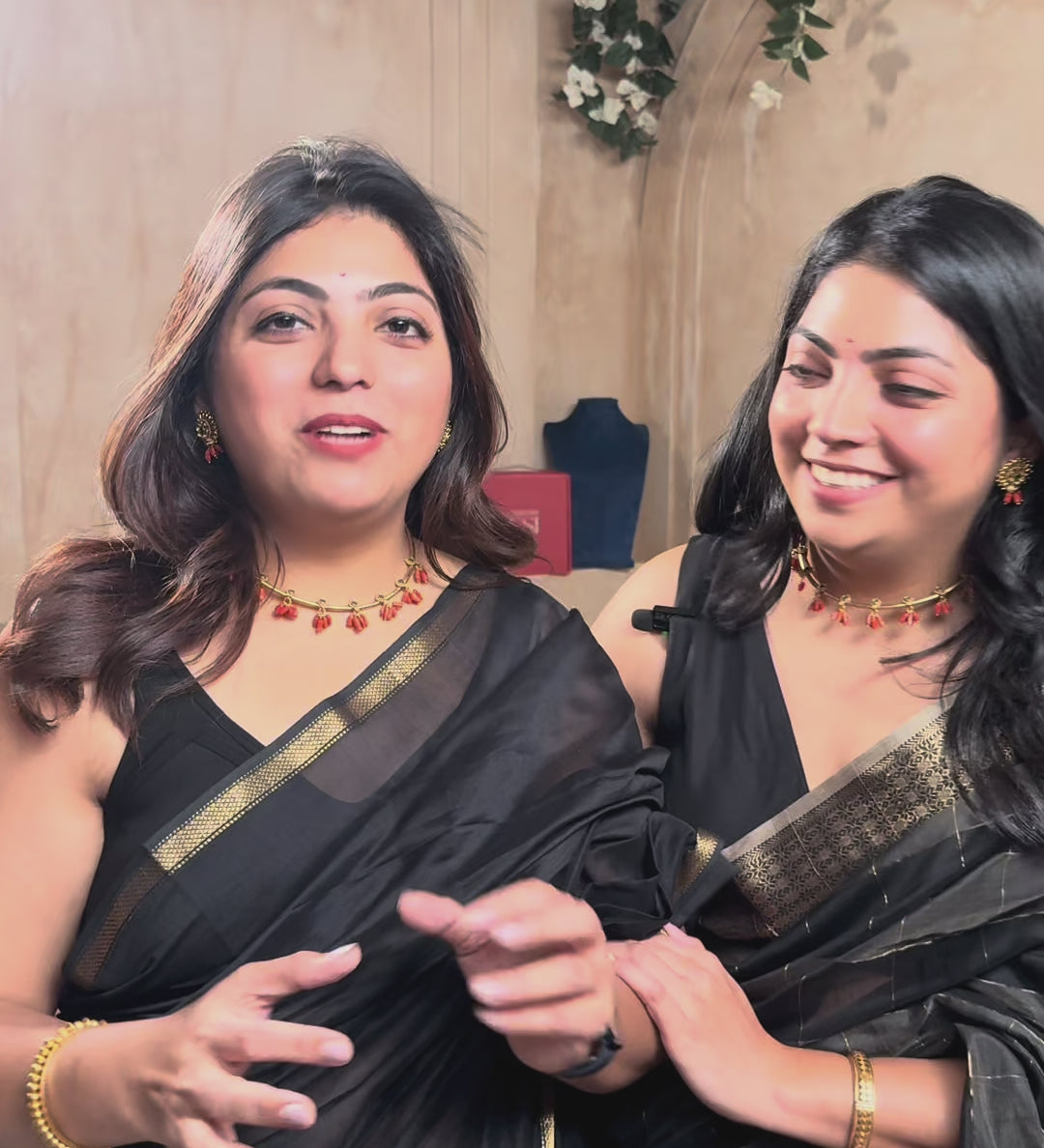 "The perfect mix of bold and elegant! The Kolhapuri details and Mohan Maal pearls complement each other beautifully."