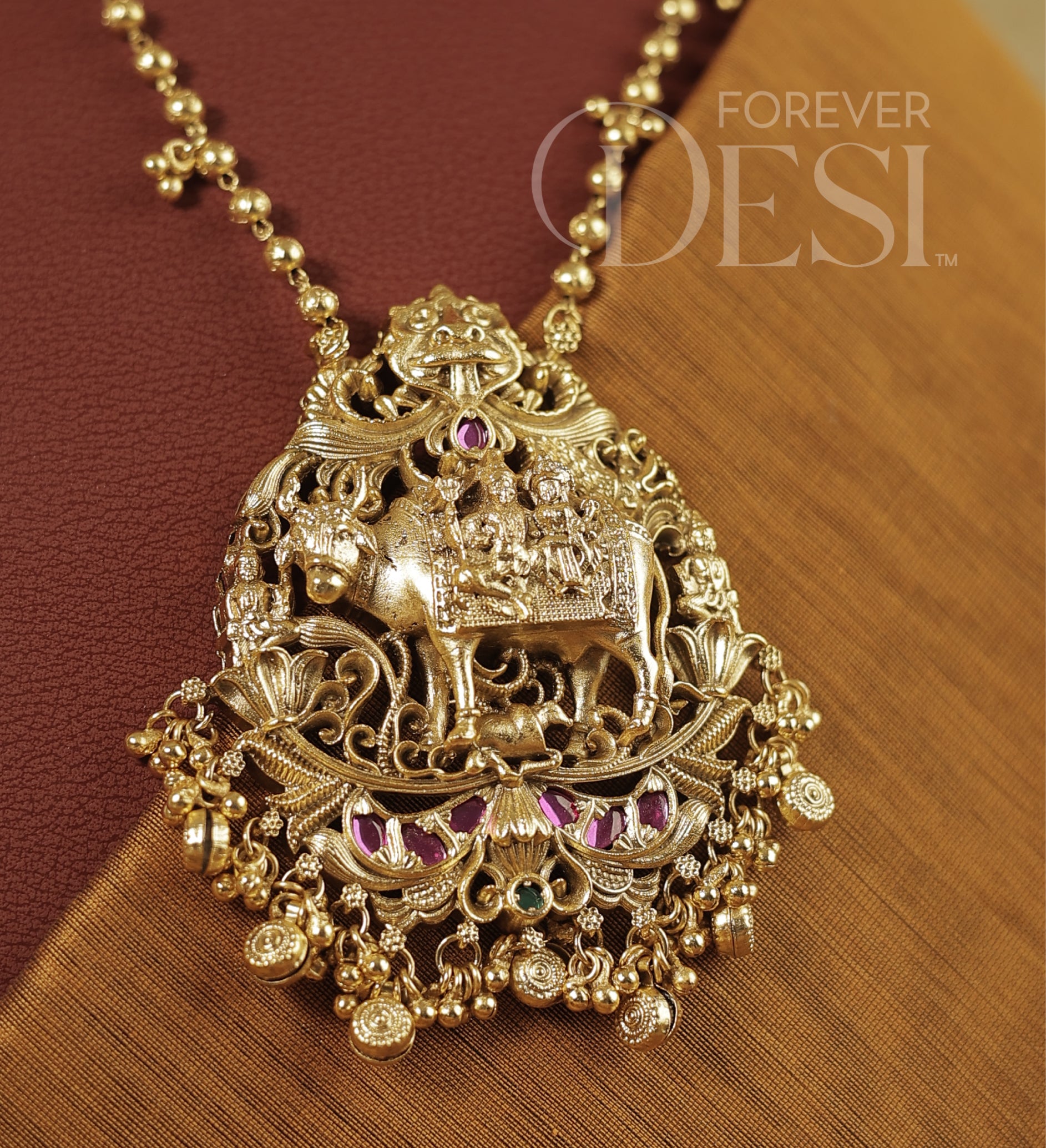 Kamdhenu cow and calf Necklace Set