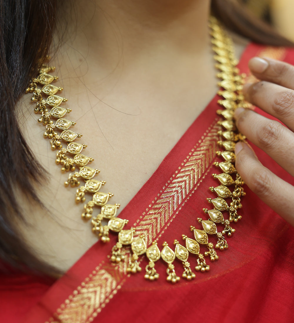 Elevate your elegance with our collection of long necklaces, inspired by traditional Indian designs and crafted with precision. Perfect for weddings, festive occasions, or adding a regal touch to your look, these necklaces beautifully enhance your neckline. Explore intricate patterns adorned with pearls, kundan, and stones for timeless sophistication.