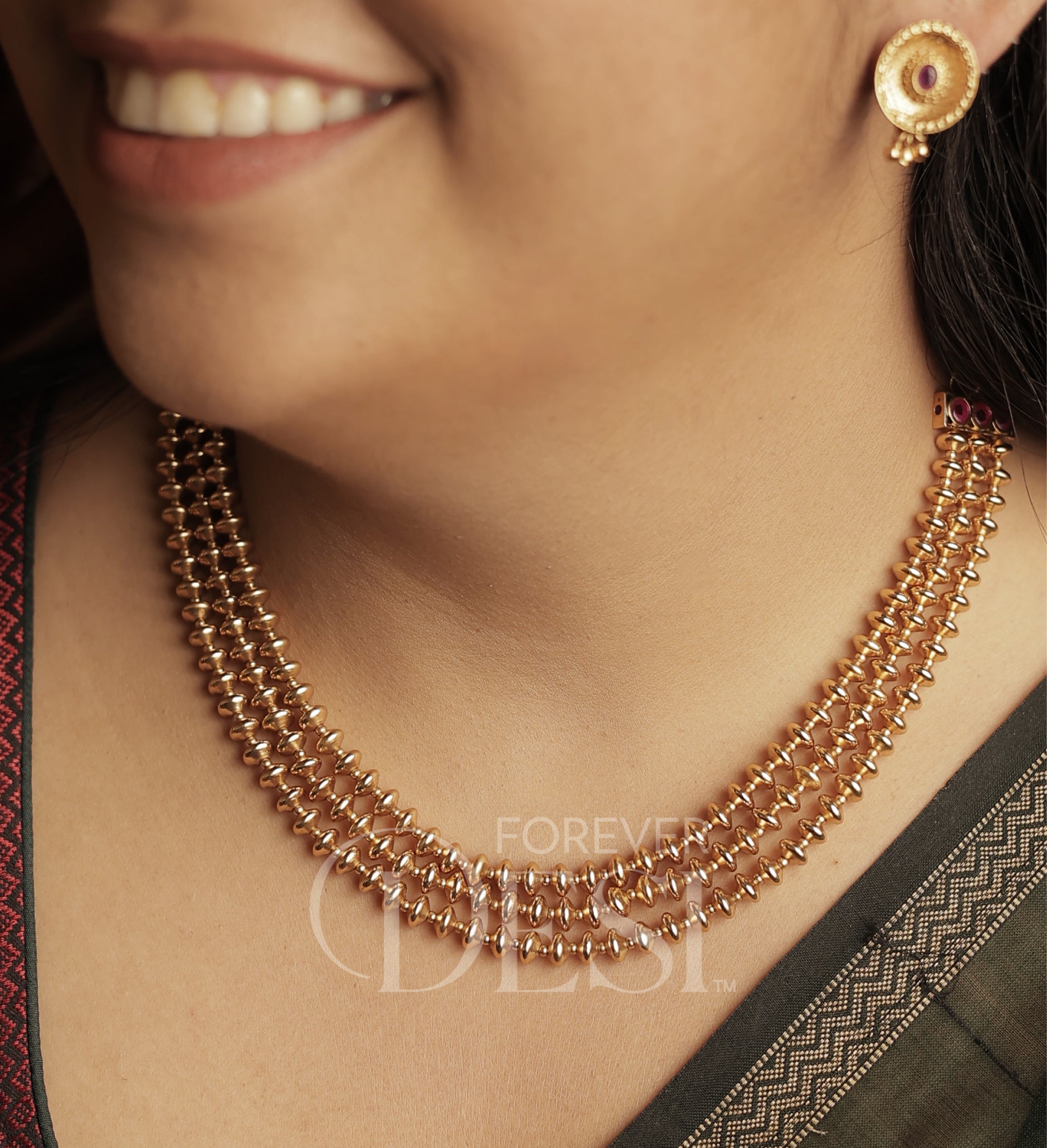 Bold yet minimal, the 3 Layers Dholki Short Set features layered dholki beads for a rich, structured look. A modern take on traditional Maharashtrian style, perfect for effortless festive and everyday wear.